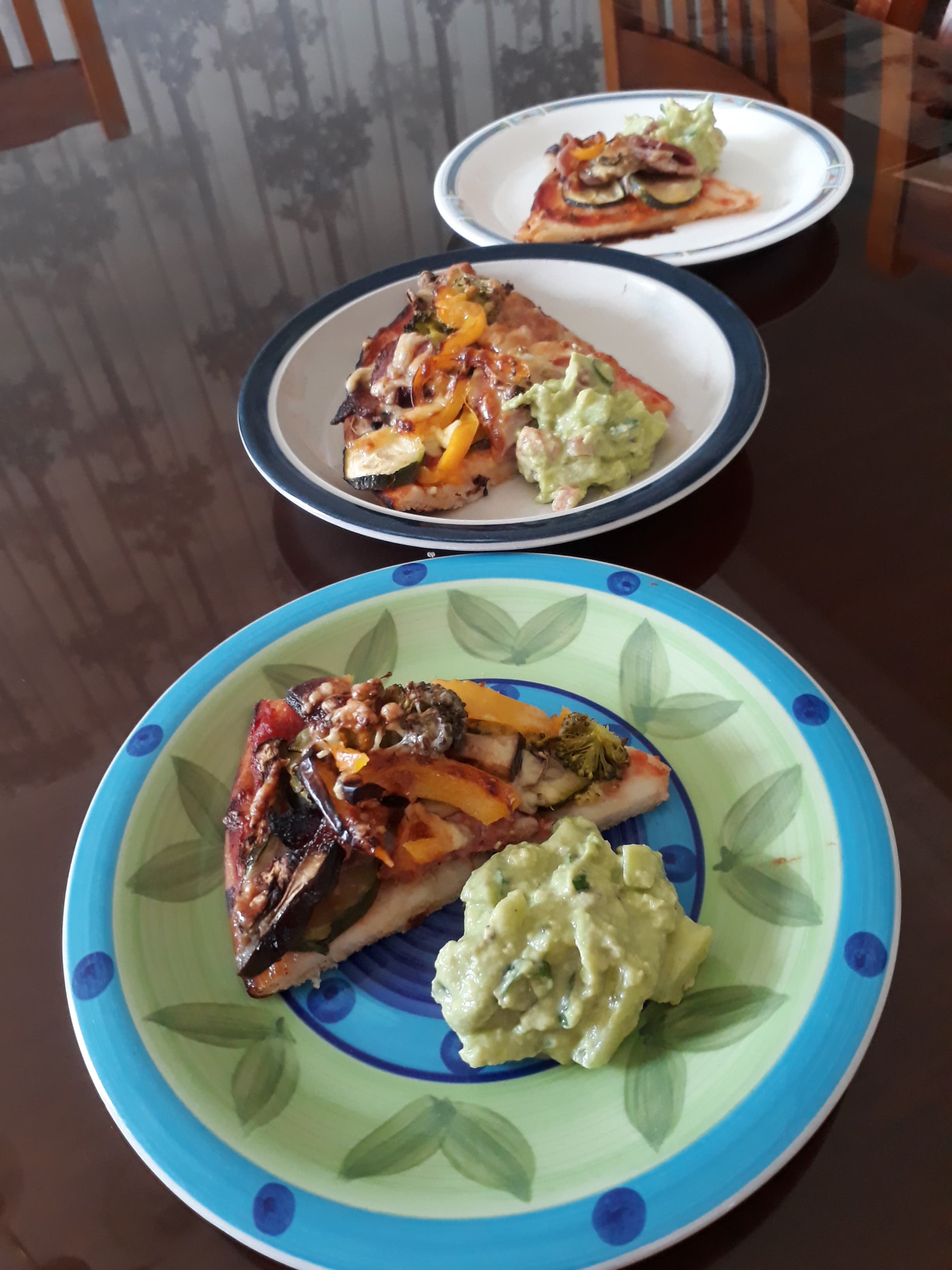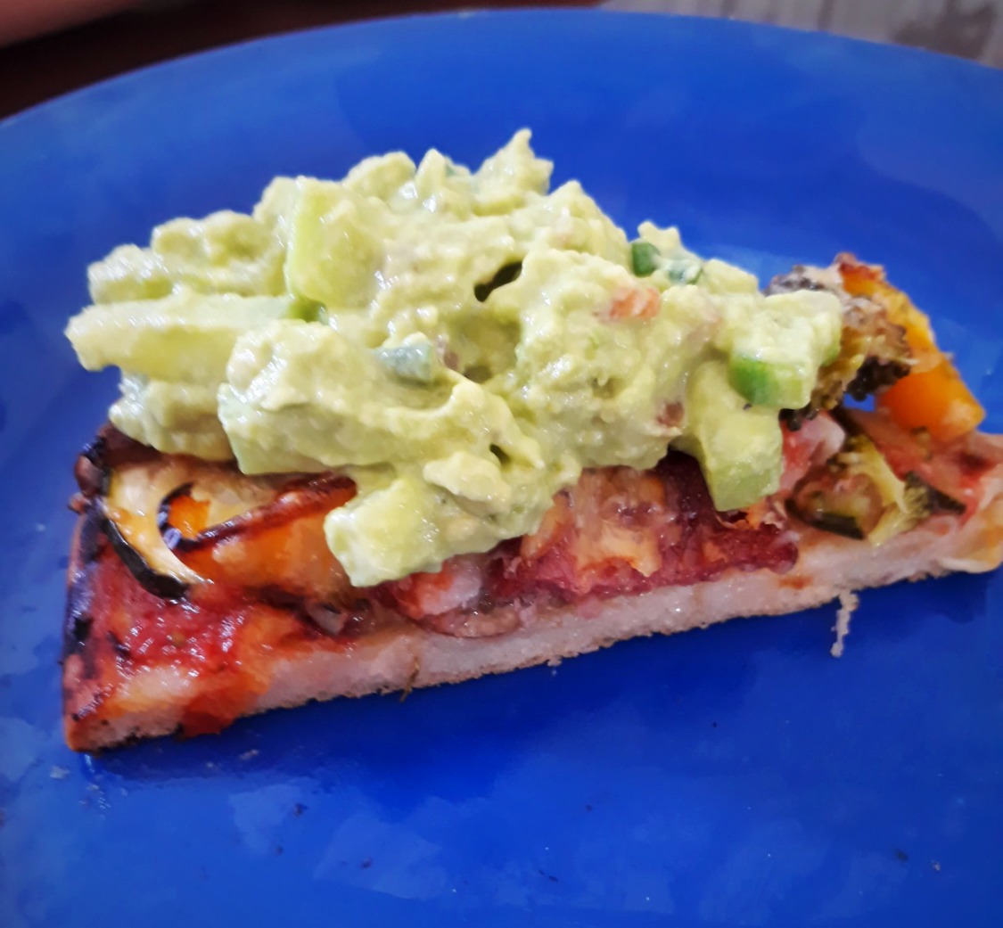 To keep our pizza moist and delicious. I served mine with a home made guacamole with some beautiful in season avocados. This will incorporate your much needed “good fats”. Bizarre mash up of foods but it totally works, trust me! Mexican and Italian. Its all about the fusion you know..