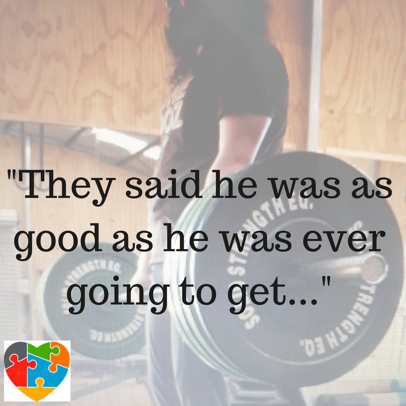 K had a traumatic birth which left him with several challenges including being diagnosed as autistic. As a child, having physio and occupational therapy, we were told he was unlikely to build more muscle mass, that he always going to be floppy with poor muscle tone, basically lack of oxygen had altered his physical composition and that he was about as good as he would ever get.